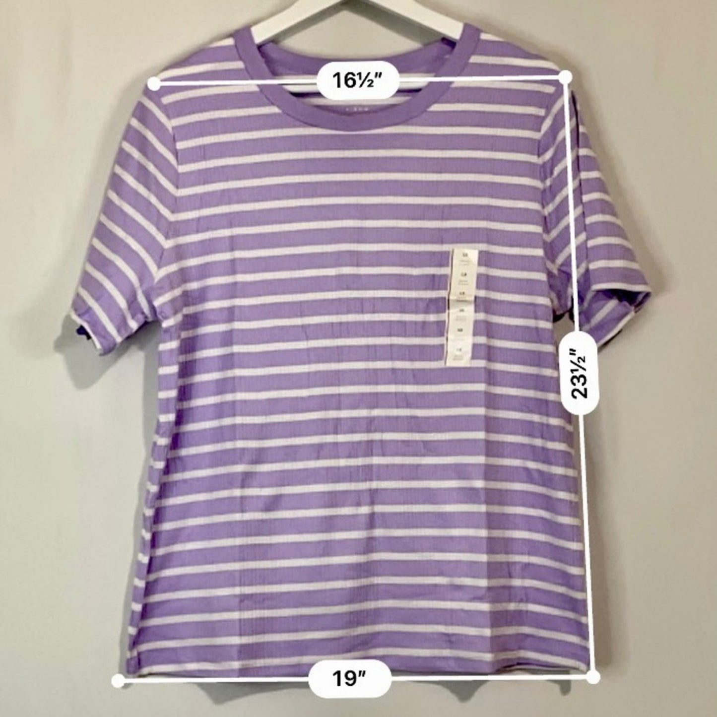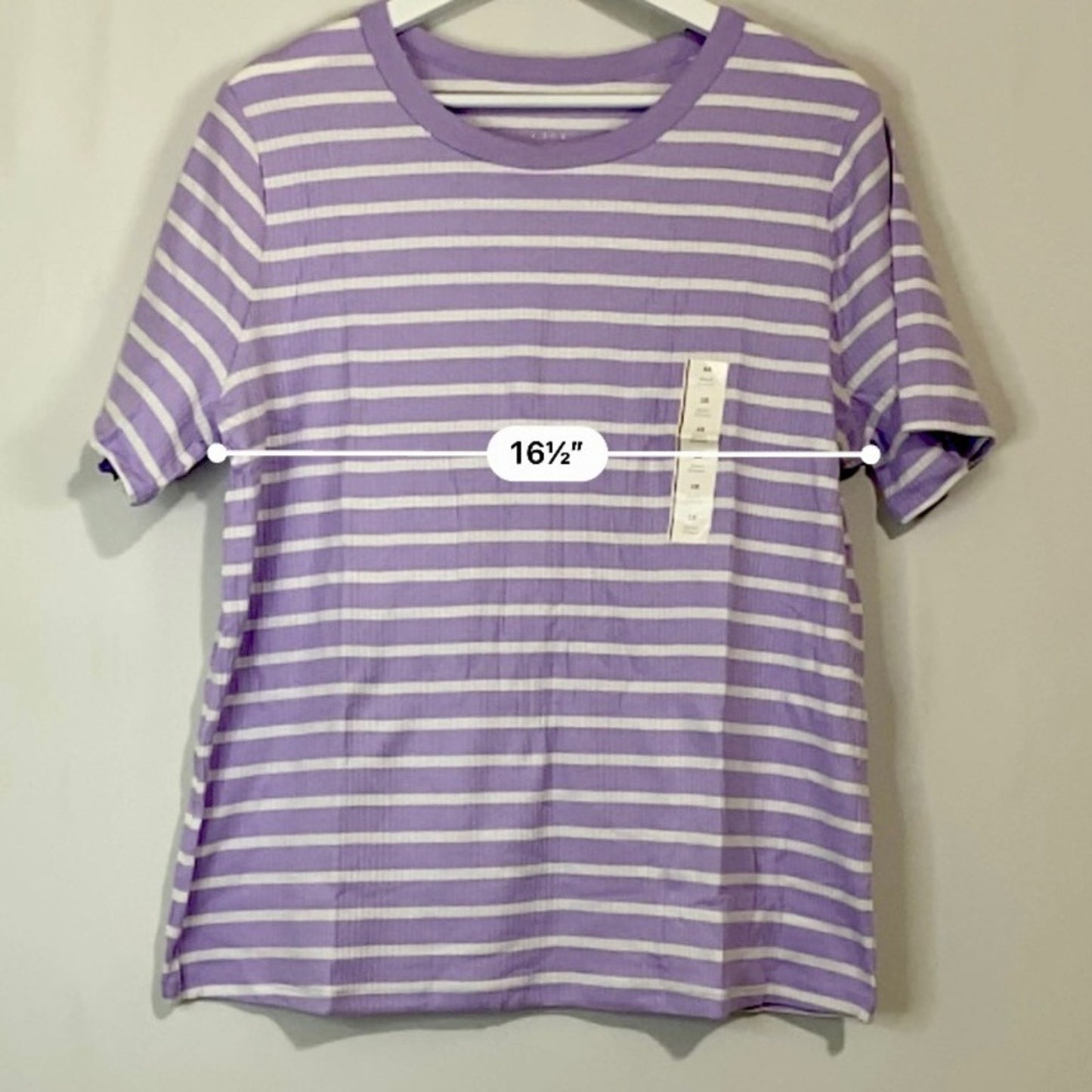 A New Day Women’s Round Neck Ribbed Short Sleeve Tee Purple & White Stripe NWT
