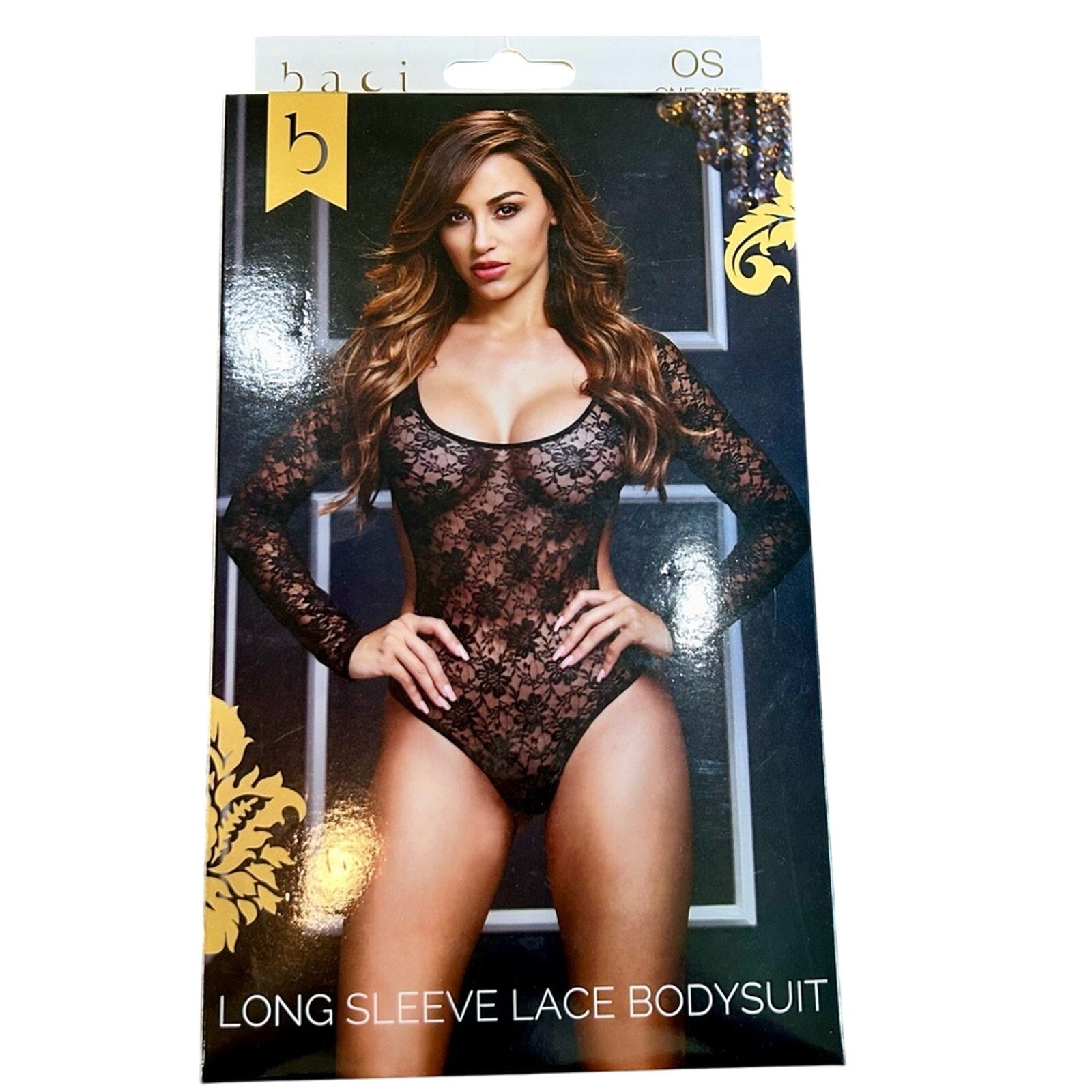 Baci White Label Women’s Long Sleeve Lace Bodysuit Lingerie Black New in Package