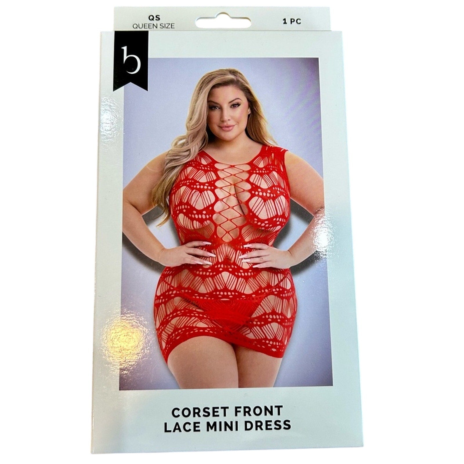 Baci Women’s Corset Front Lace Mini Dress Lingerie Red Queen Size New in Package