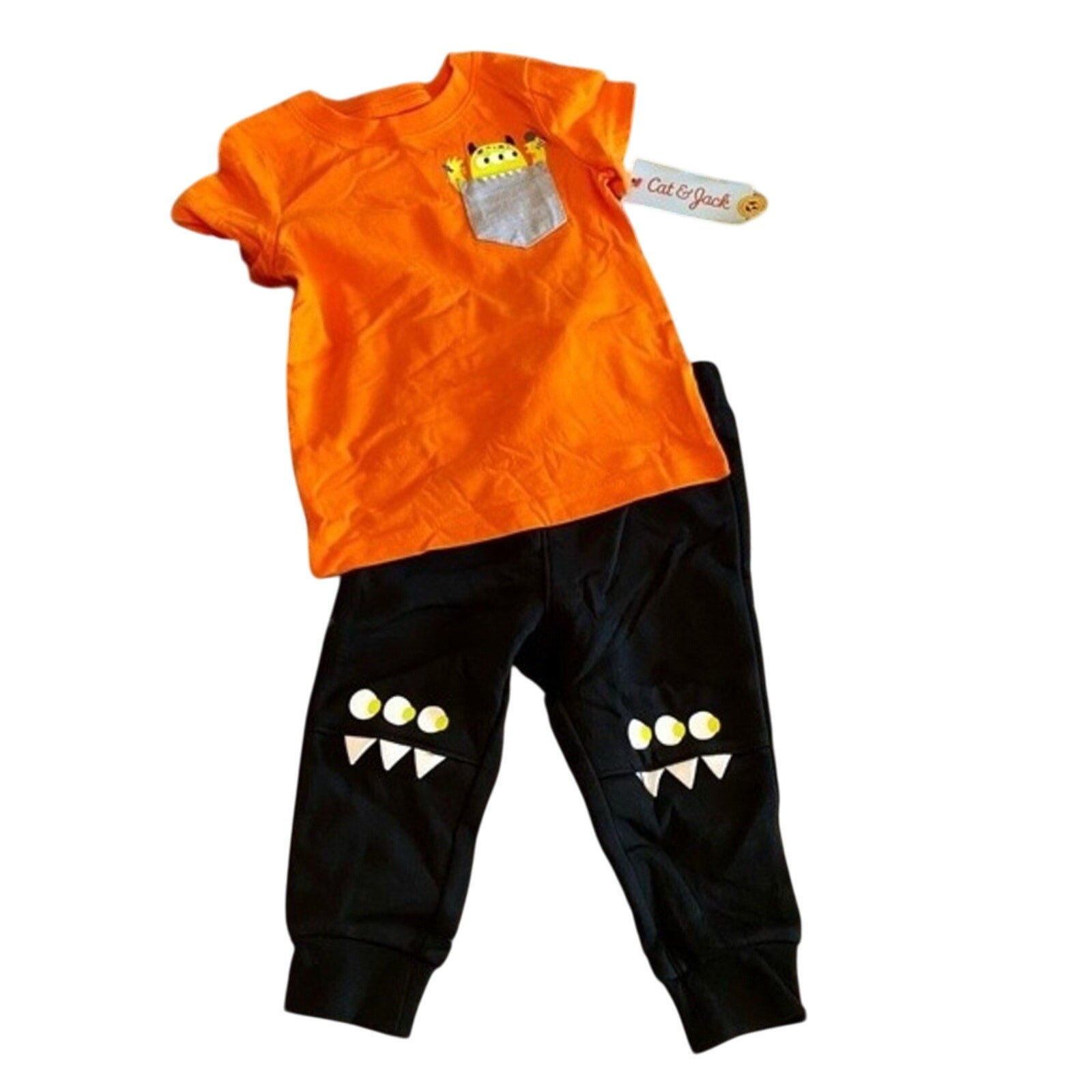 Cat & Jack Toddler Monster Halloween Outfit Orange & Black NWT