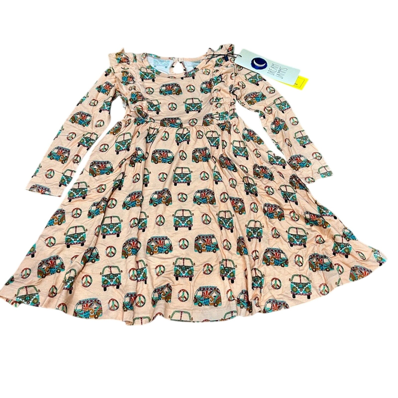 Dream Jamms Girls Long Sleeve Hippie Camper Van Peace Twirl Dress