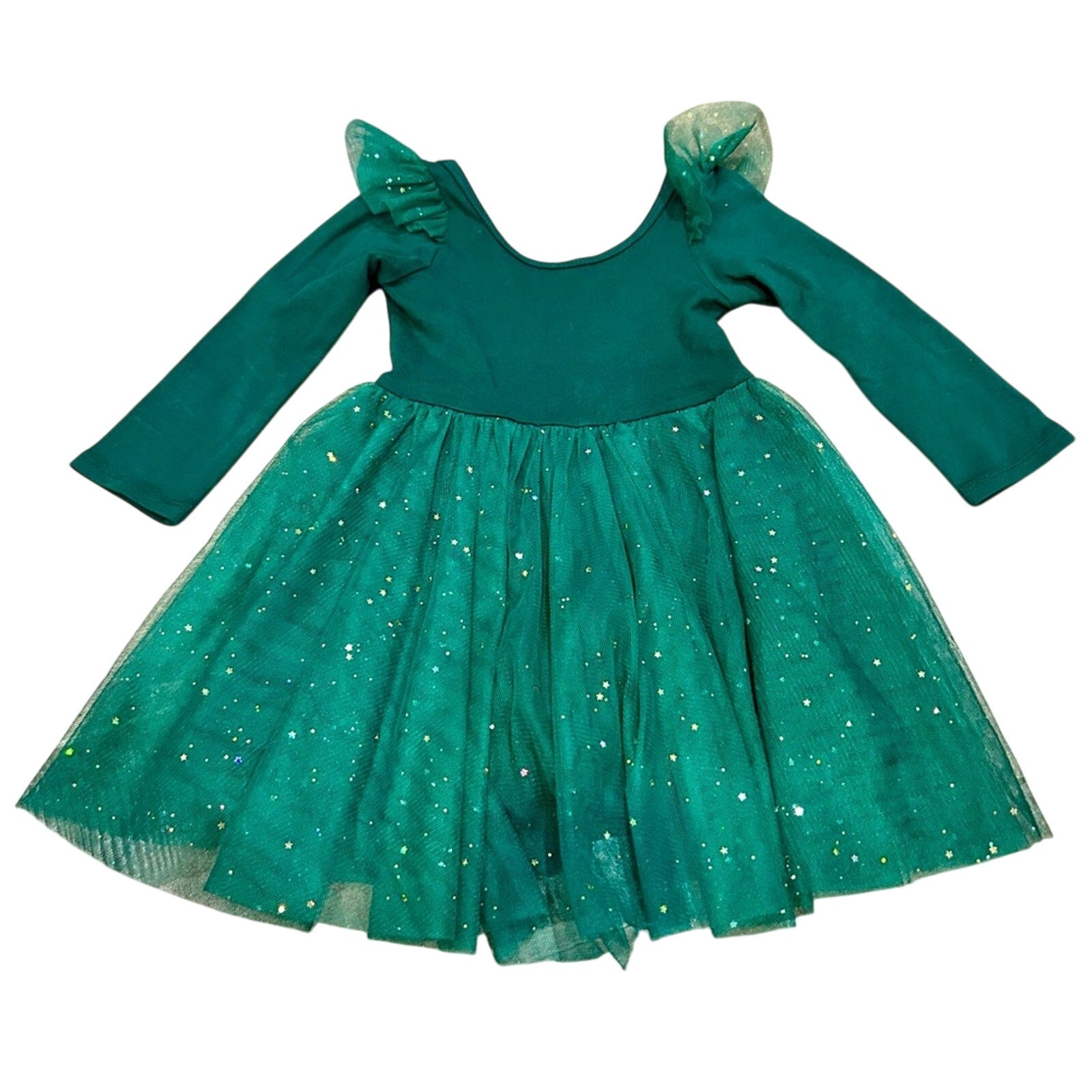 Ele Story Girls Mistletoe Ballerina Dress Green Size 12-18 M EUC Stars Tulle
