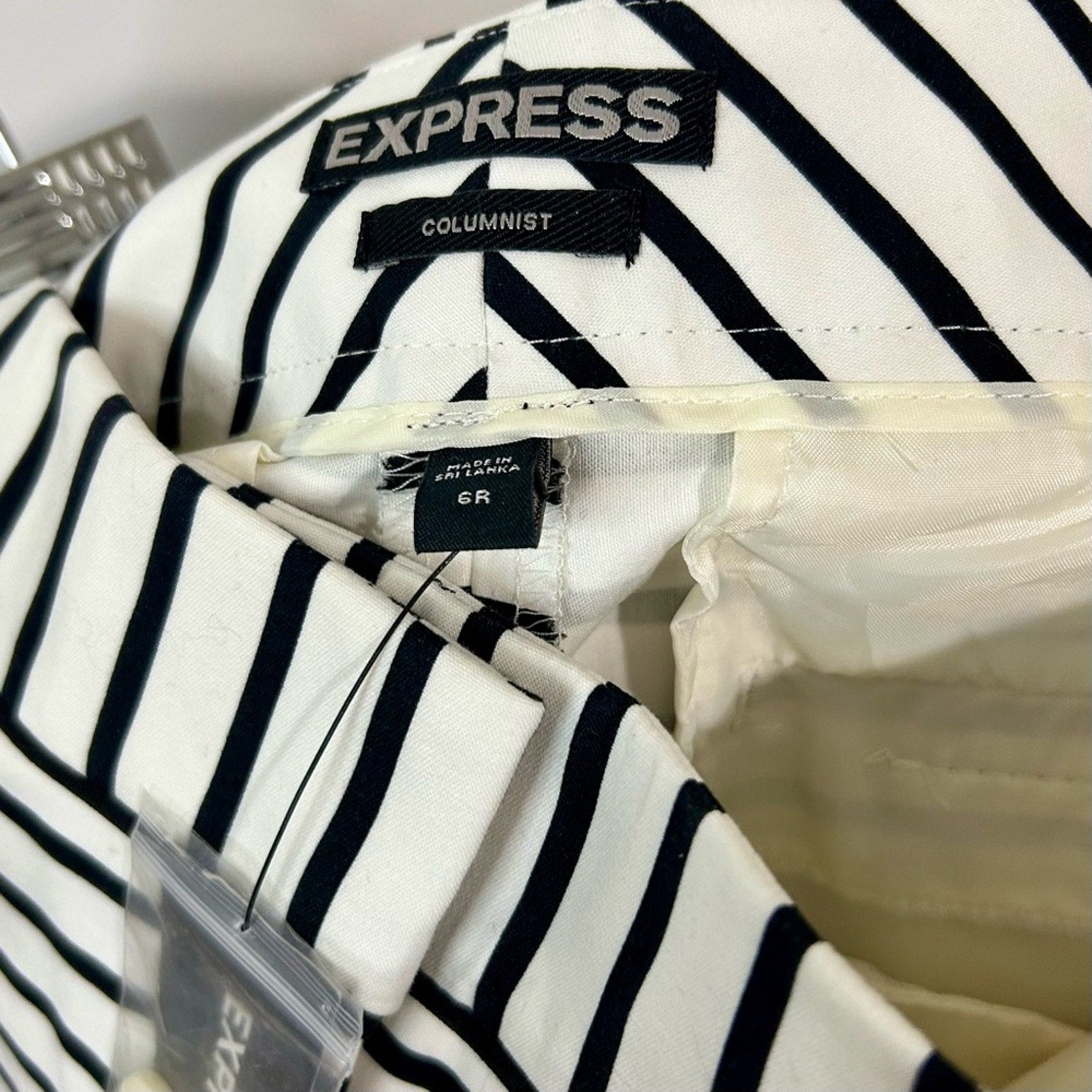 Express Women’s Columnist Ankle Dress Pant Black and White Striped Size 6 NWT