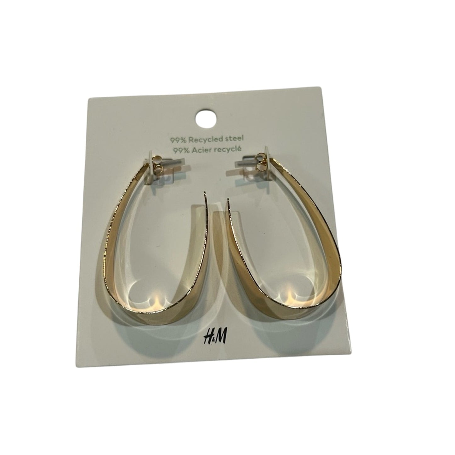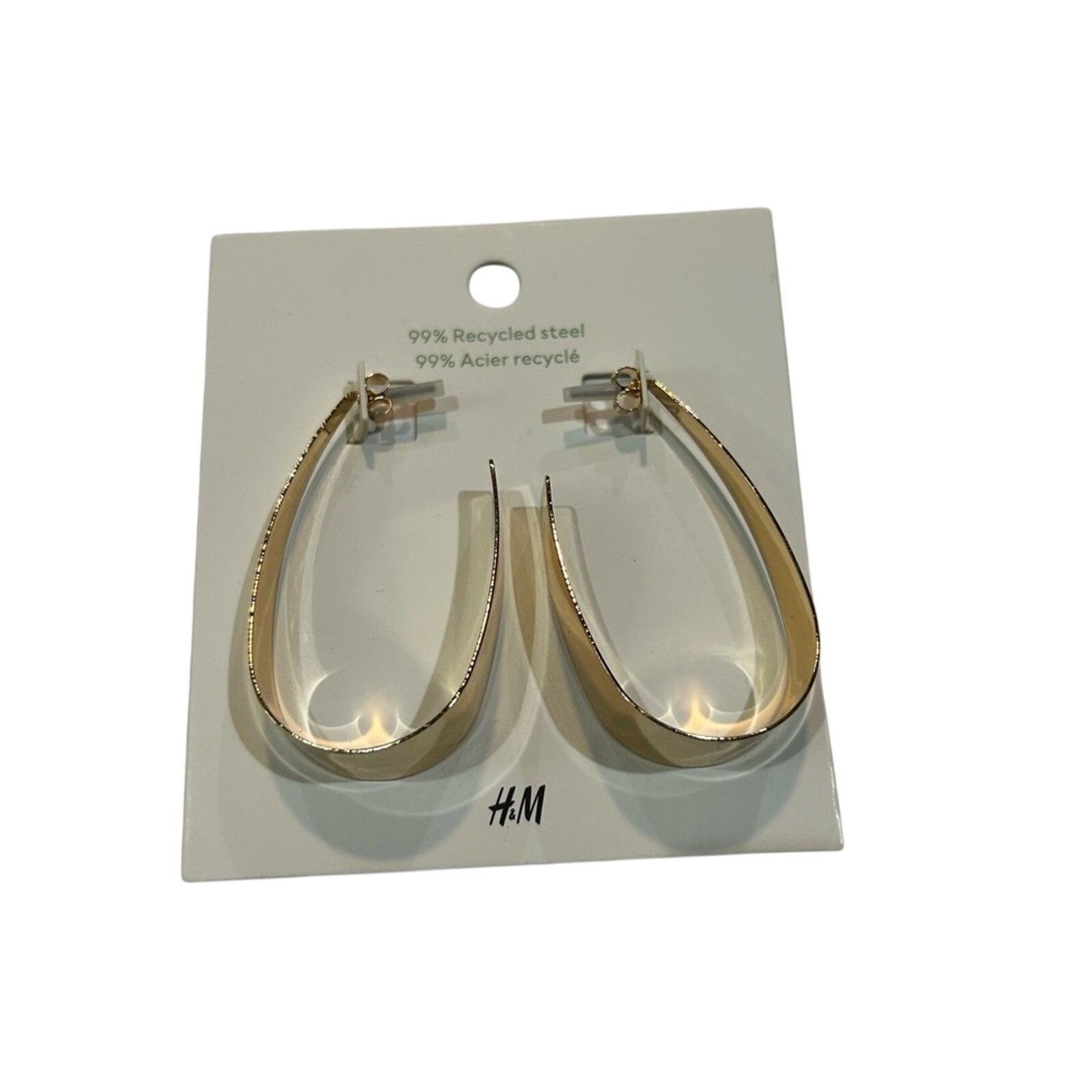 H&M Women’s Yellow Gold Tapered Oval Open Earrings Recycled Steel NWT Cute Girly