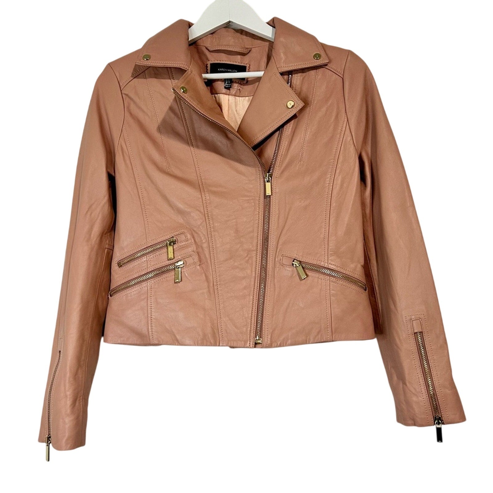 Karen Millen Women's Signature Moto Lamb Leather Jacket Pink Size 4 EUC