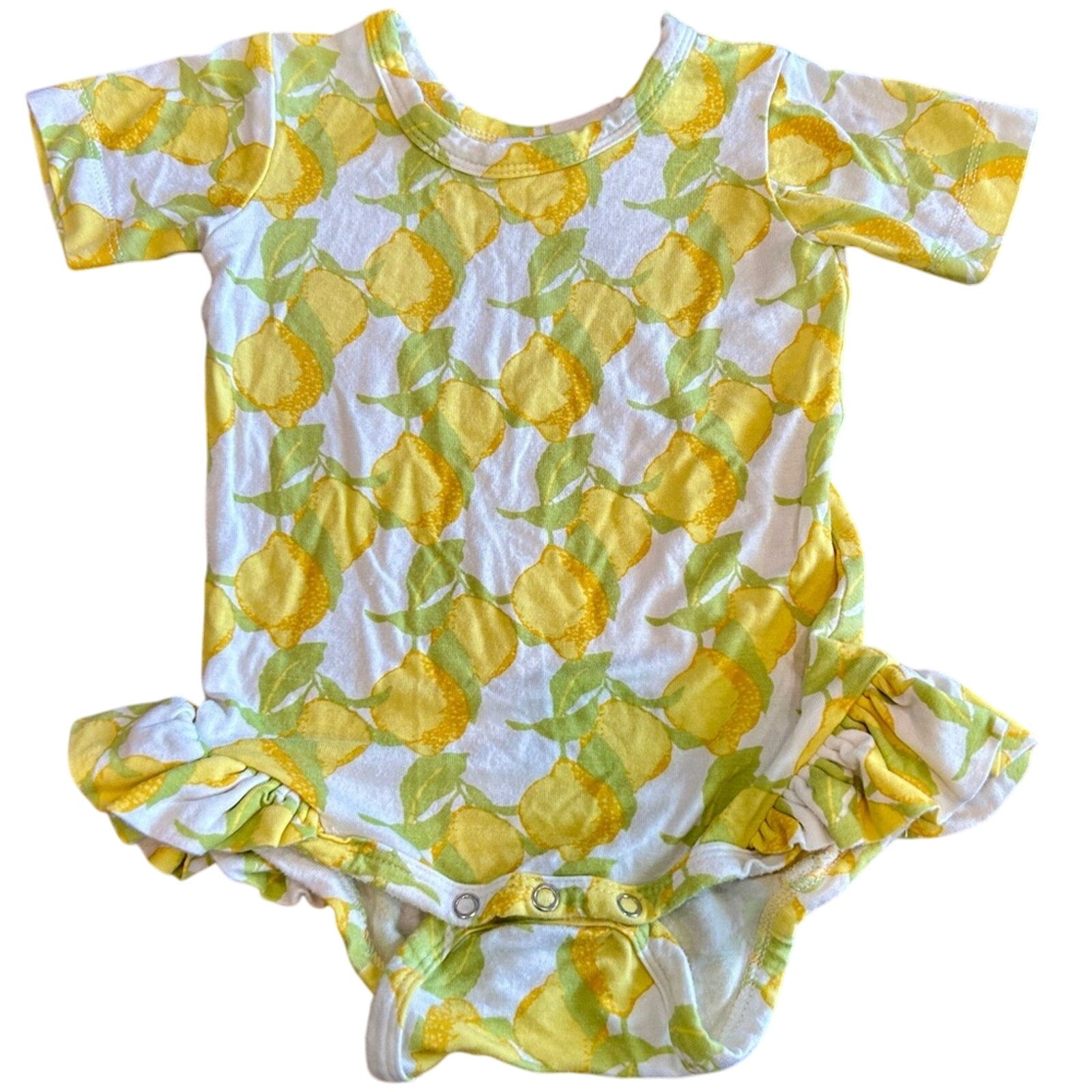 Kate Quinn Infant Girls Short Sleeve Ruffle Lemon Bubble Onesie White 3-6 M EUC