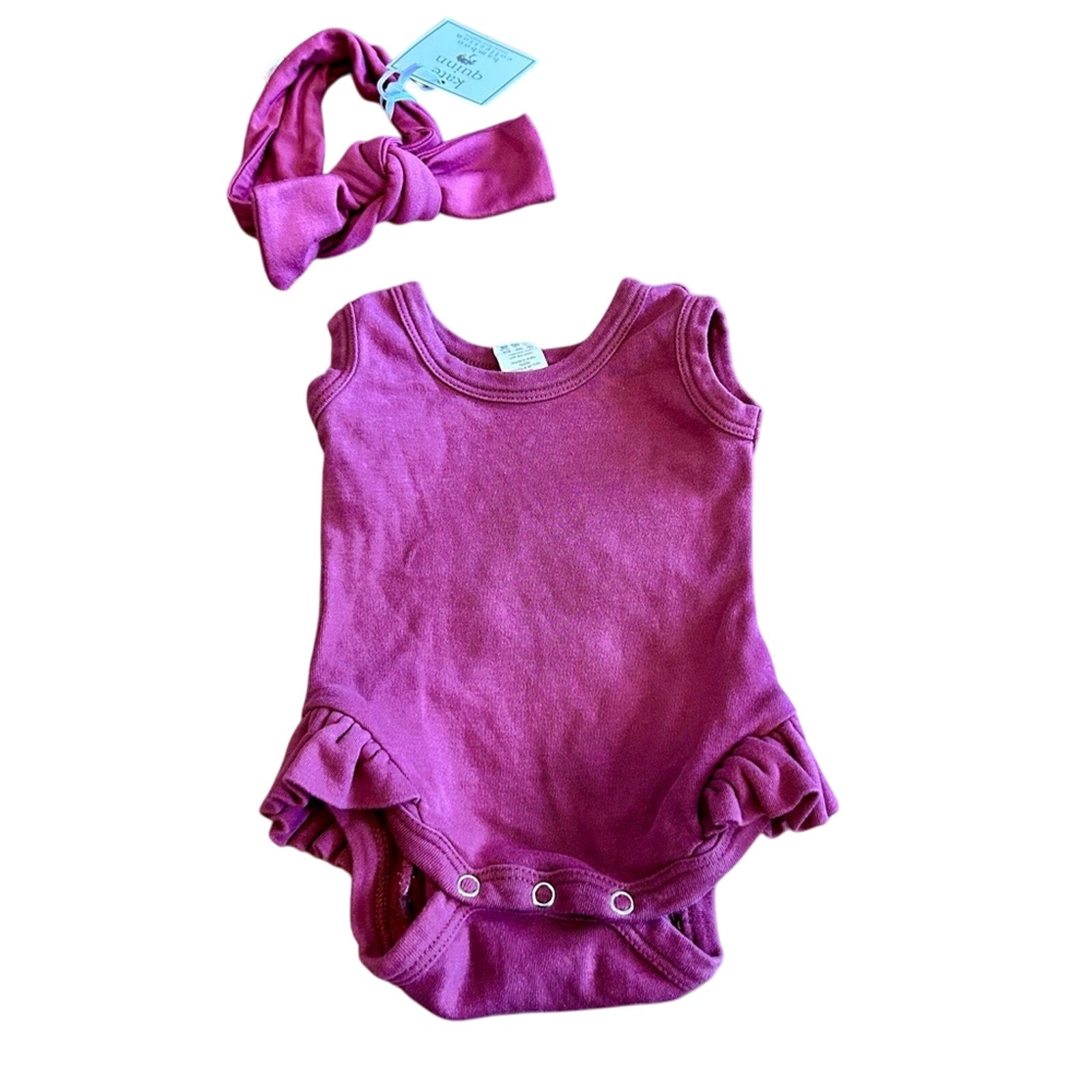 Kate Quinn Infant Girls Sleeveless Organic Cotton Bubble Onesie w/ Headband EUC