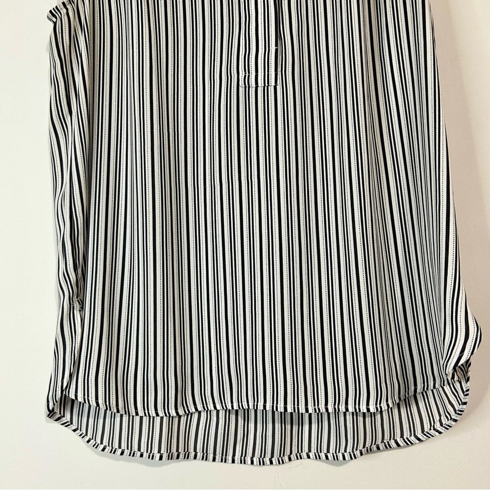 Loft Women’s Sleeveless Ruffle Striped Blouse Black White Size Medium EUC Girly