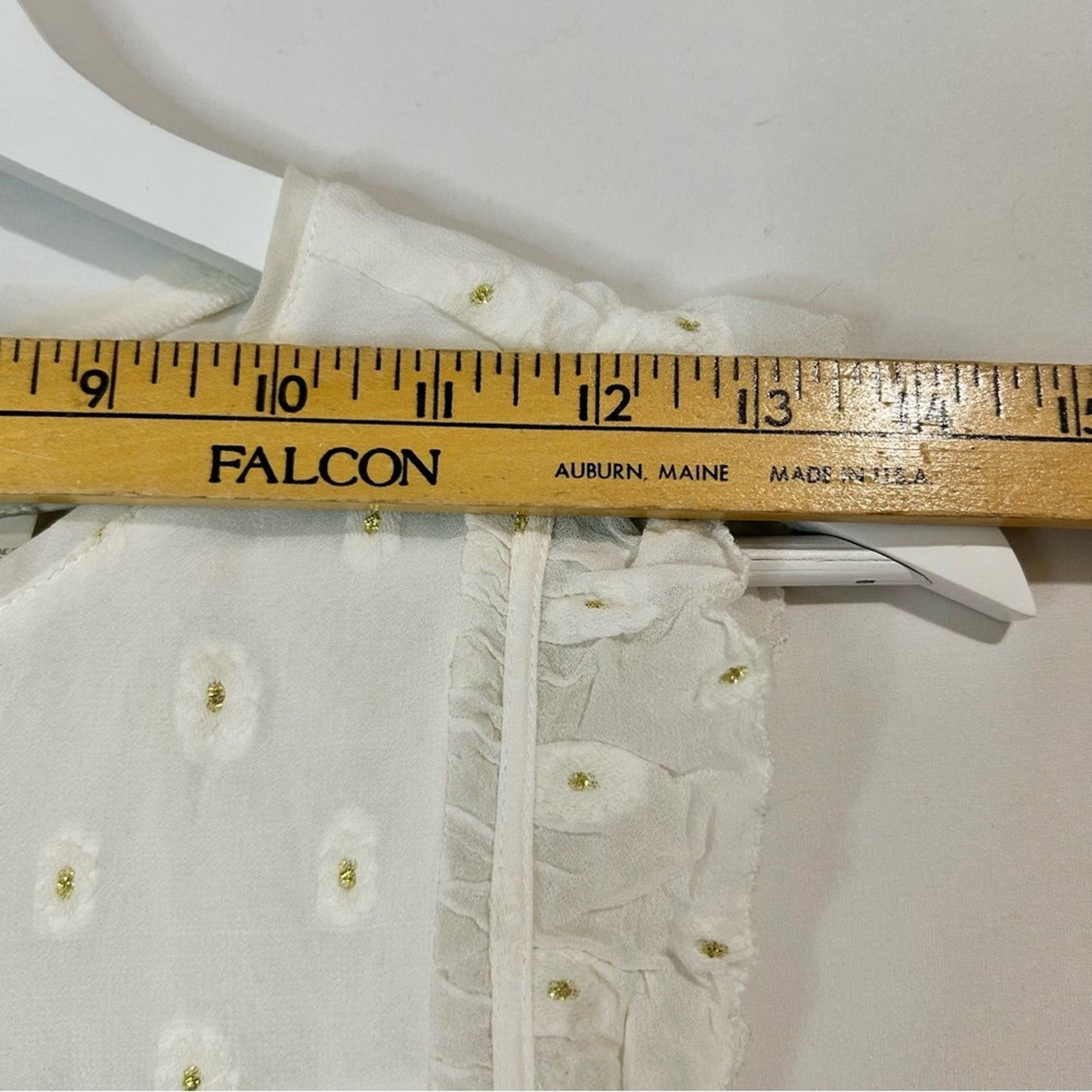 Loft Women’s Textured Layered Ruffle Sleeve Floral Blouse White Gold M P Girly