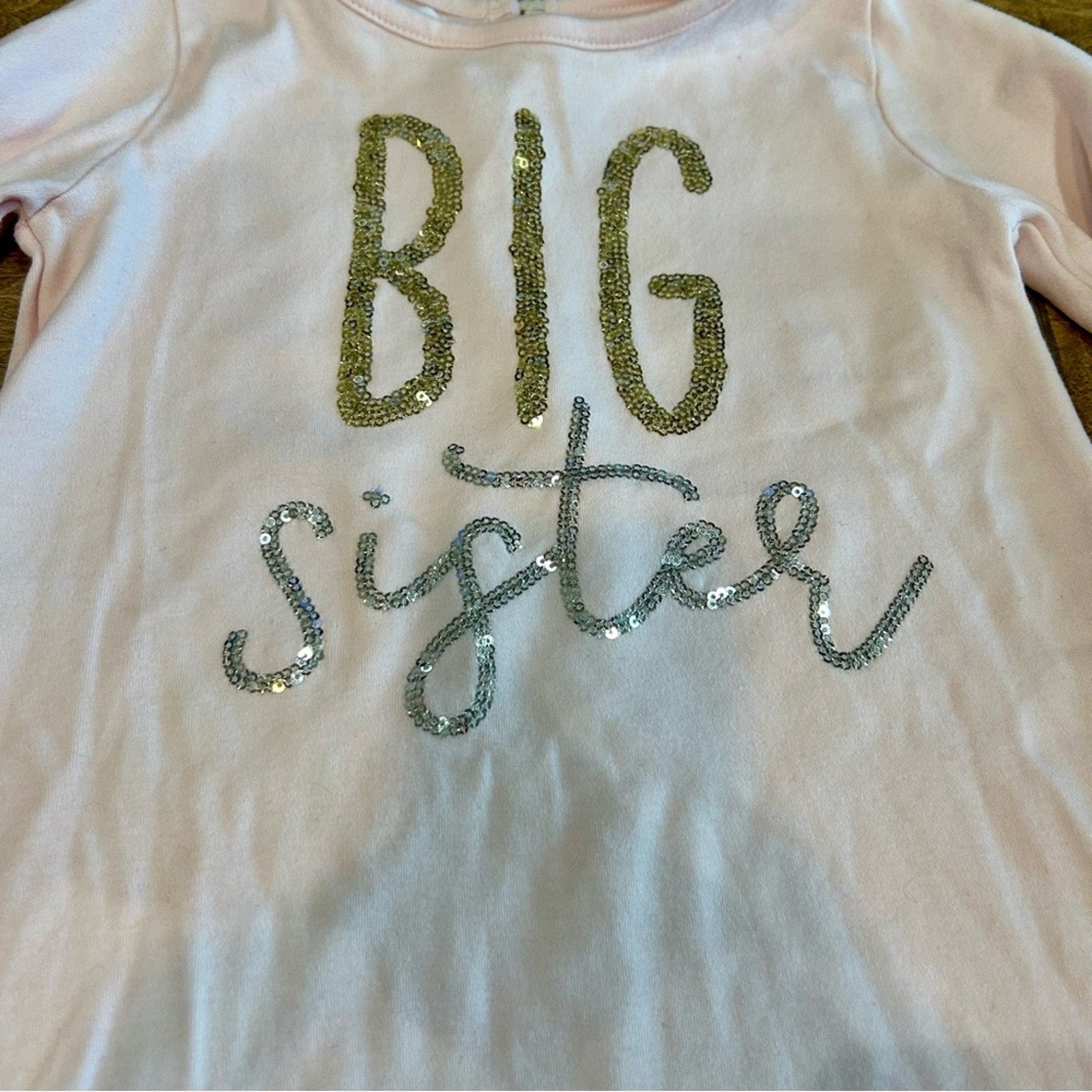 Mud Pie Girls Long Sleeve Big Sister Sequin T-Shirt Pink Size Large EUC Matching