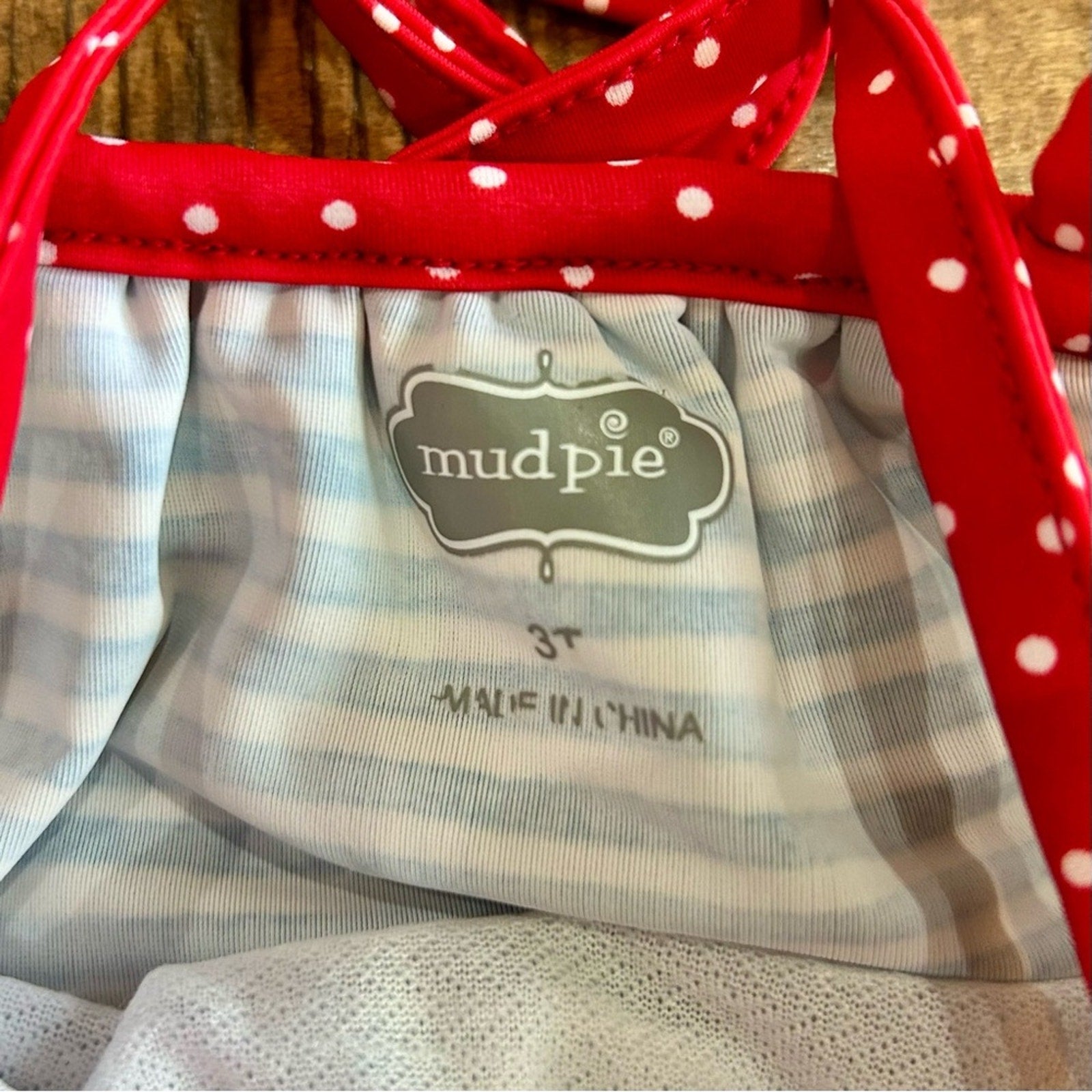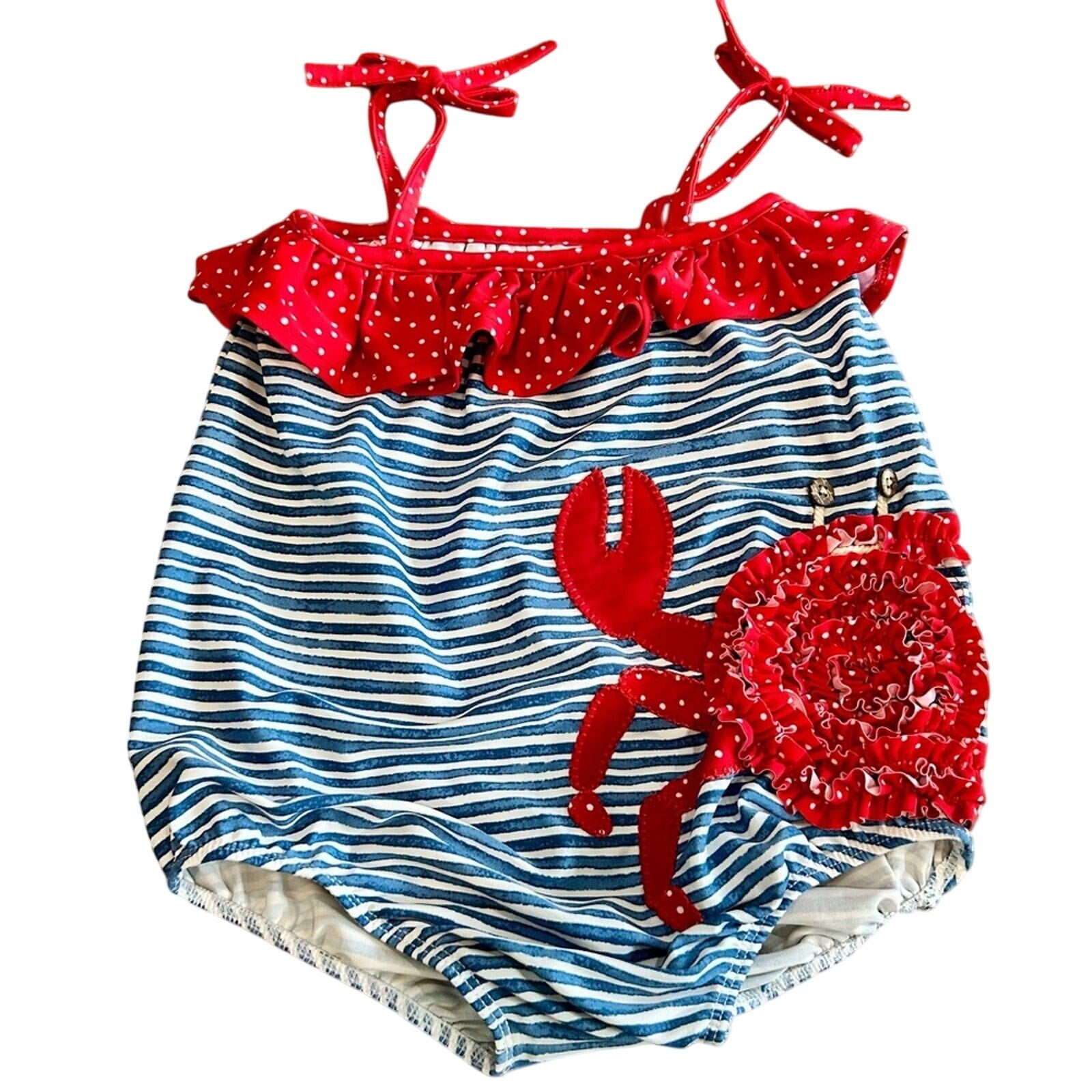 Mud Pie Toddler Girls Crab Ruffle Stripes Polka Dot One Piece Swimsuit 3T EUC