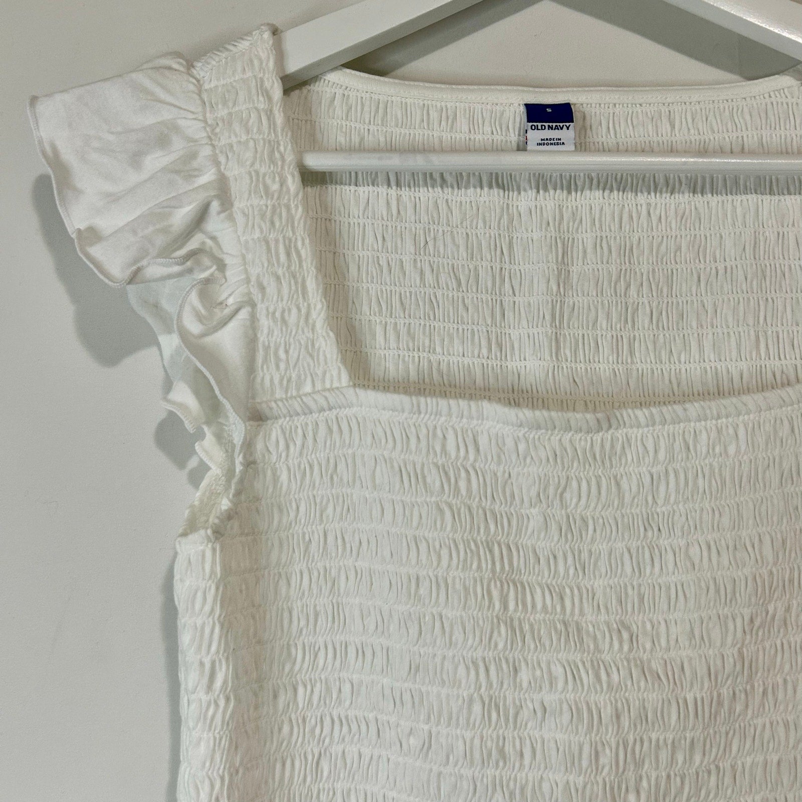Old Navy white top, smocked cotton blouse, women’s size small, flutter sleeve shirt, square neck top, ruffle hem blouse, NWT Old Navy, casual spring summer top, breathable cotton top, everyday basic blouse, cottagecore, cottage