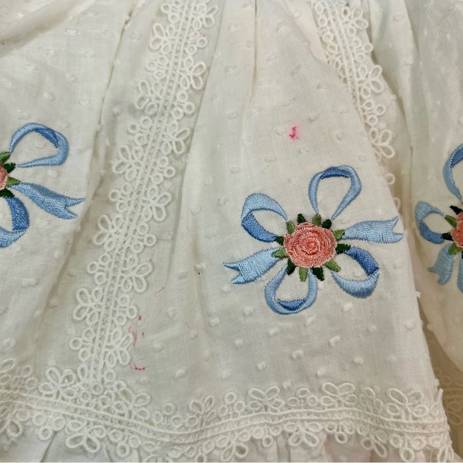 Only Little Once Toddler Girls Swiss Dot Flower Bow Dress White Size 2 FLAW Cute