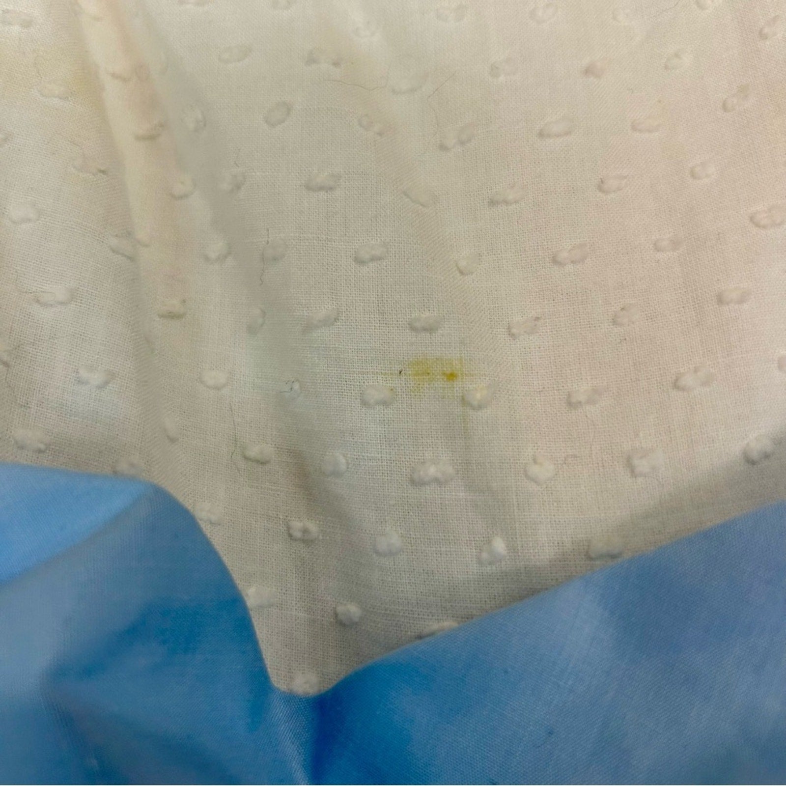 White with blue waist tie