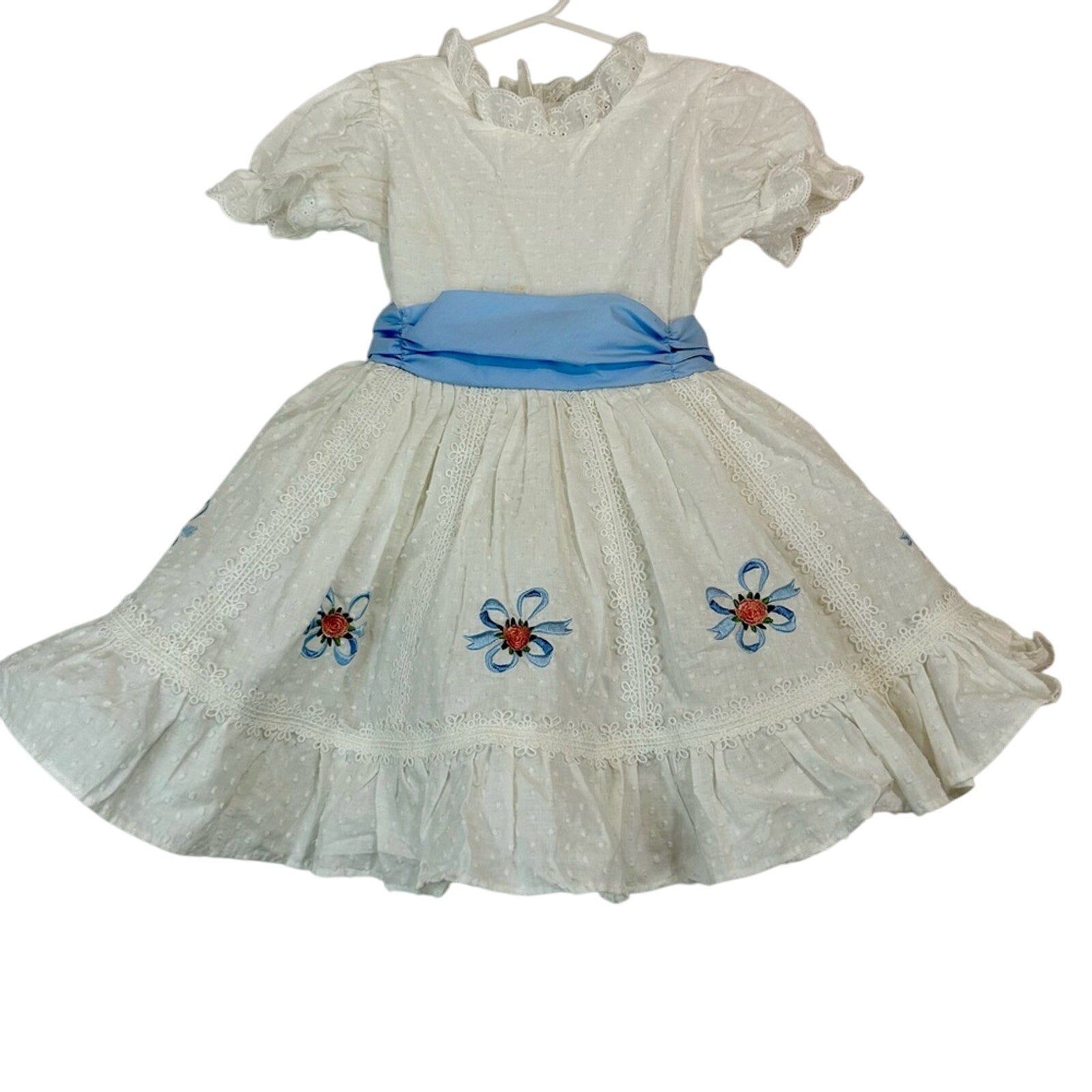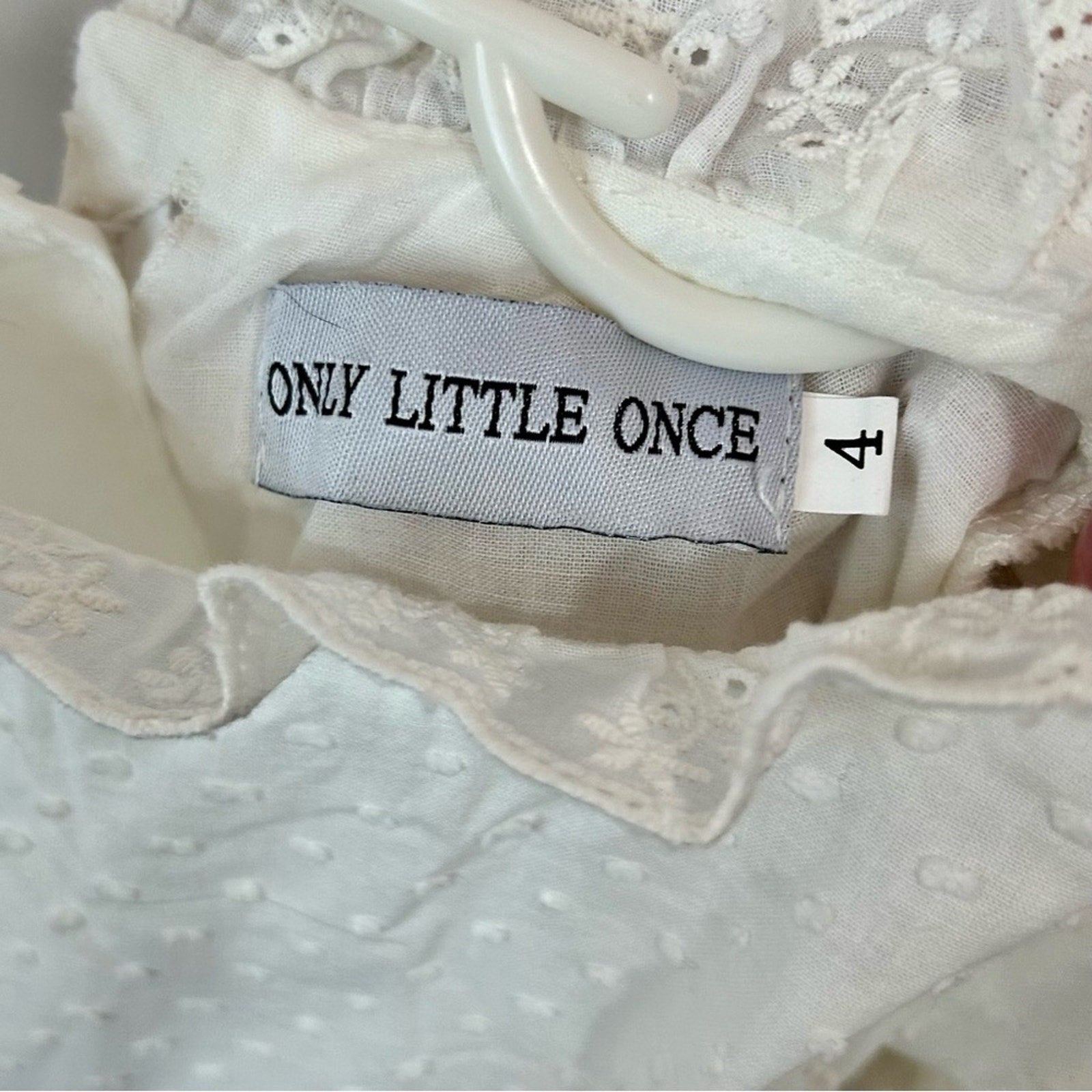 Only Little Once Toddler Girls Swiss Dot Flower Bow Dress White Size 4 FLAW Cute