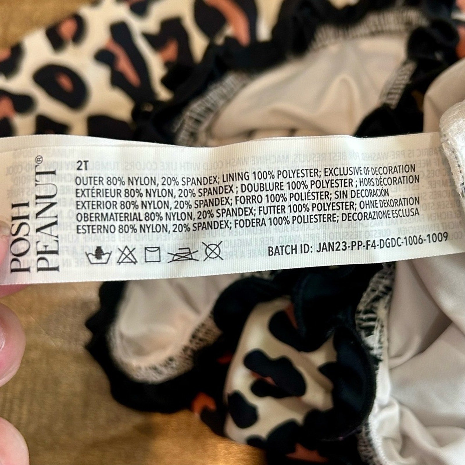 Posh Peanut Girls Leopard Print Ruffle Rash Guard One Piece Swimsuit Cream EUC