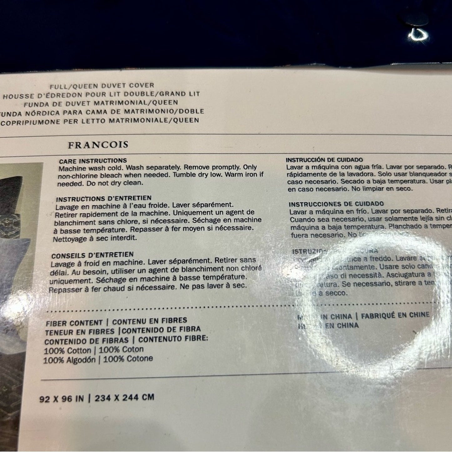 92 x 96 inches