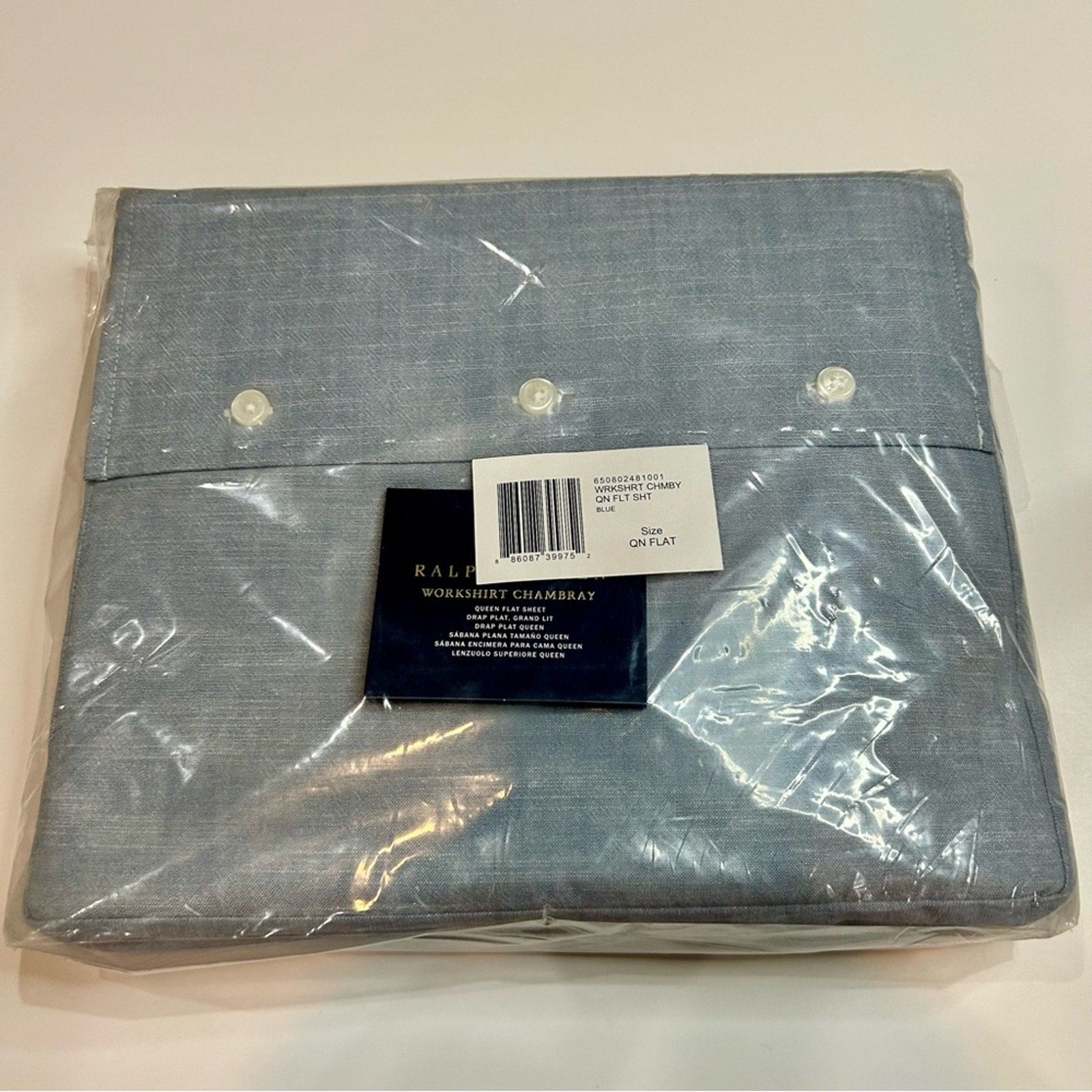 Ralph Lauren Home Workshirt Chambray Queen Flat Sheet Blue New in Package