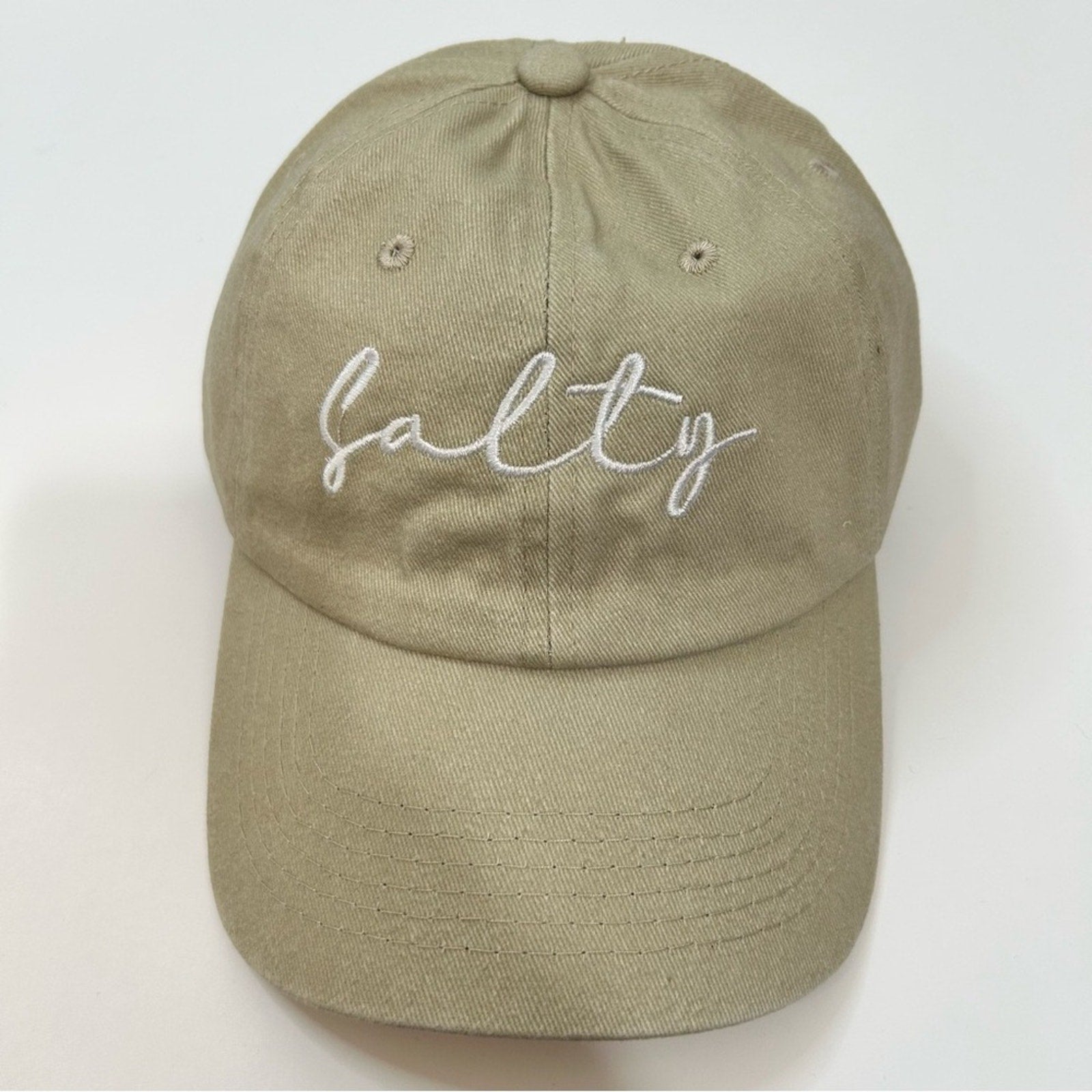 Salty Embroidered Vintage Washed Cotton Baseball Cap Hat Tan White NEW Cute