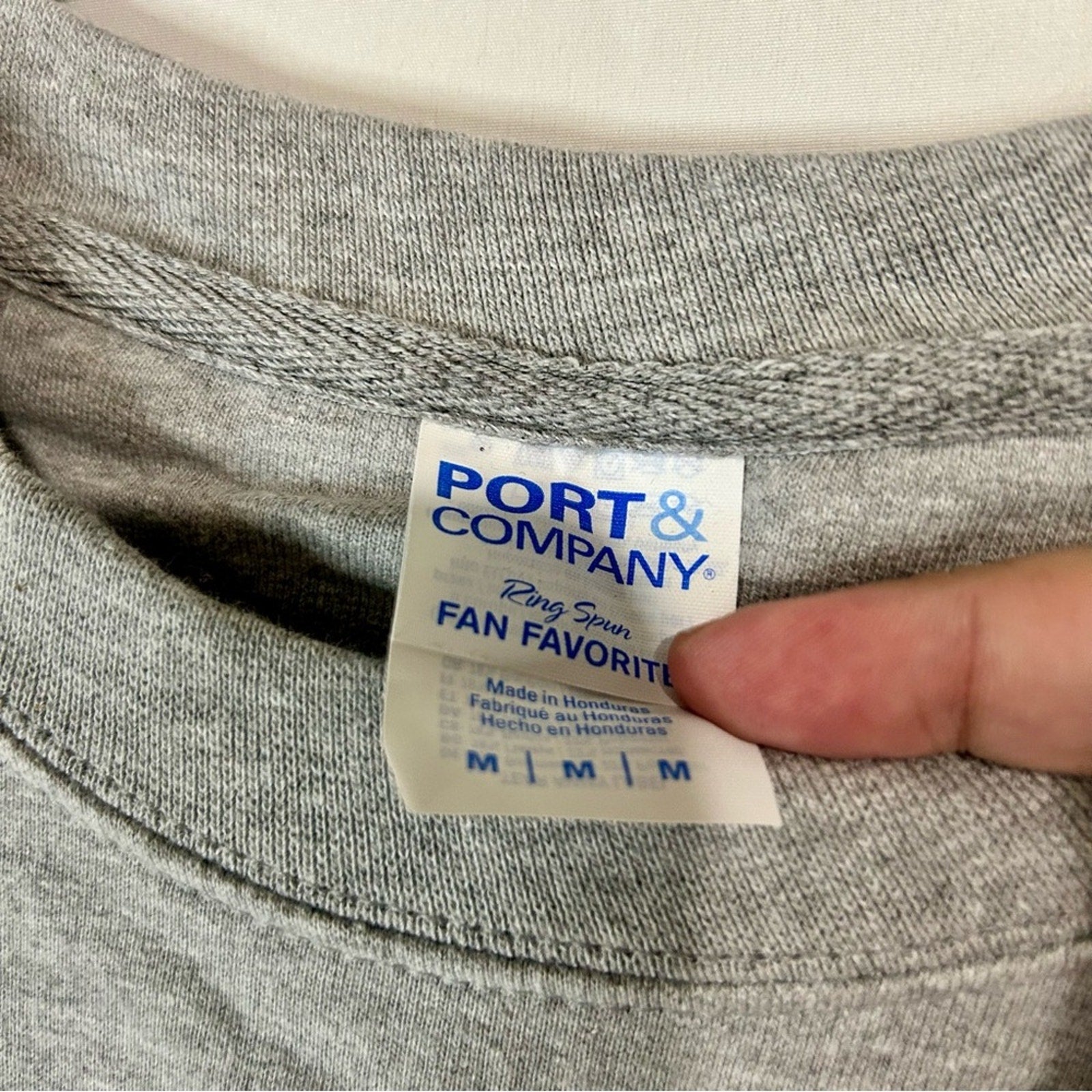 Grey with Red Blue and White Toothpaste Graphic printed on Port & Company sweatshirt