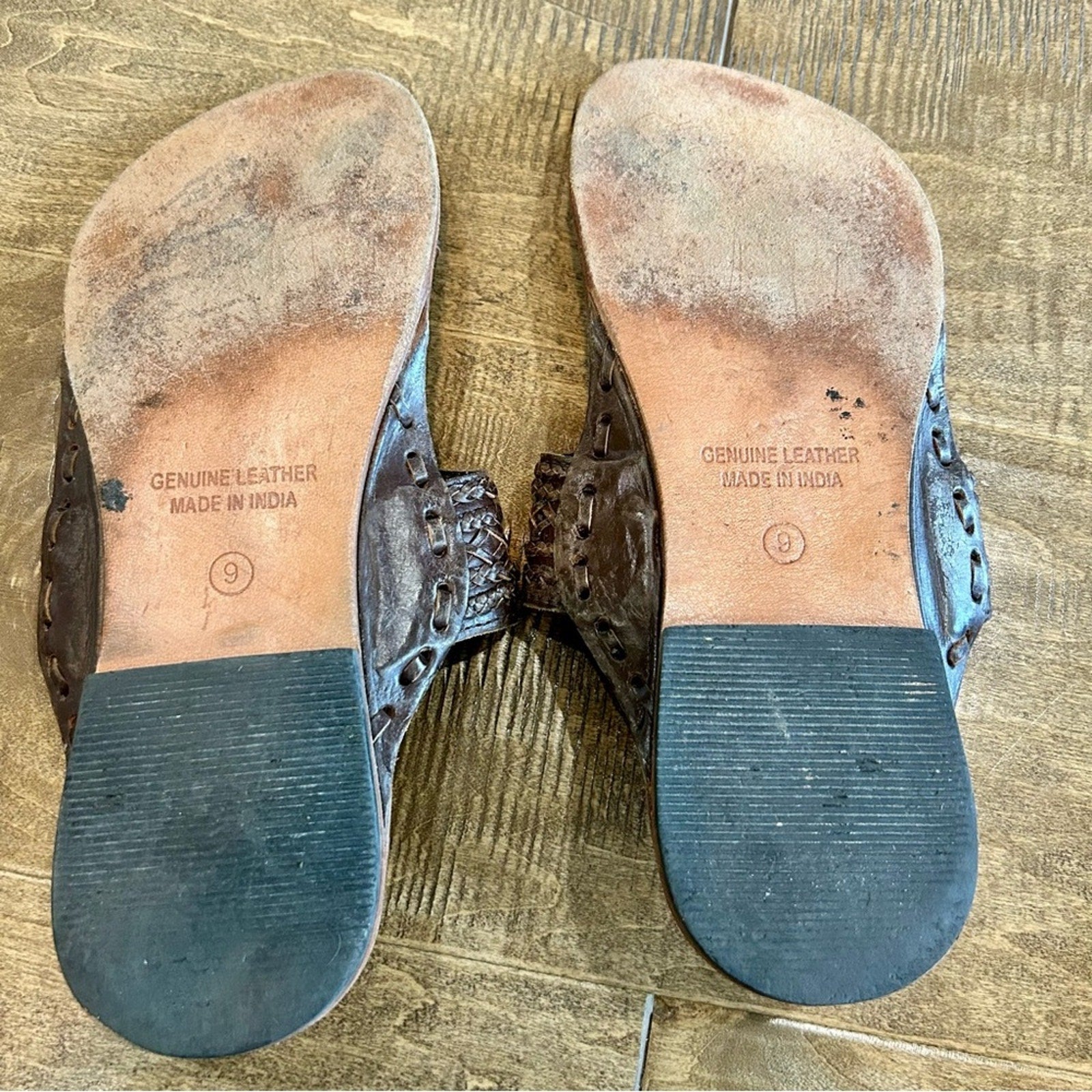 Women’s Leather Woven Detail Sandals Brown Size 9 EUC Girly Summer Intricate