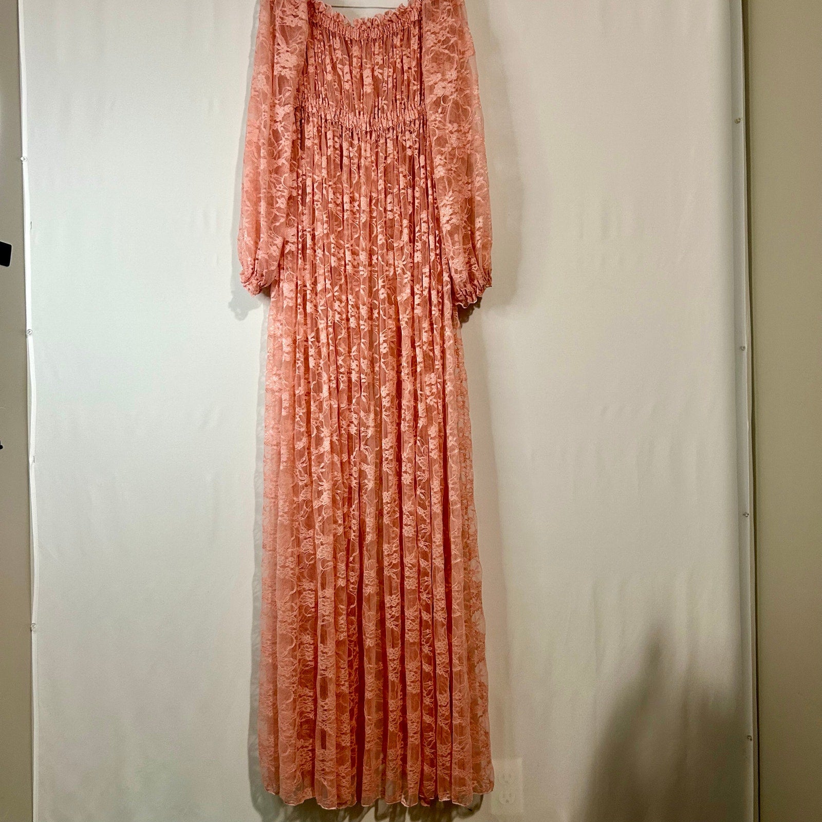 Women’s Maternity Off Shoulder Long Sleeve Maxi Dress Coral Pink EUC Open Belly Boho Photoshoot
