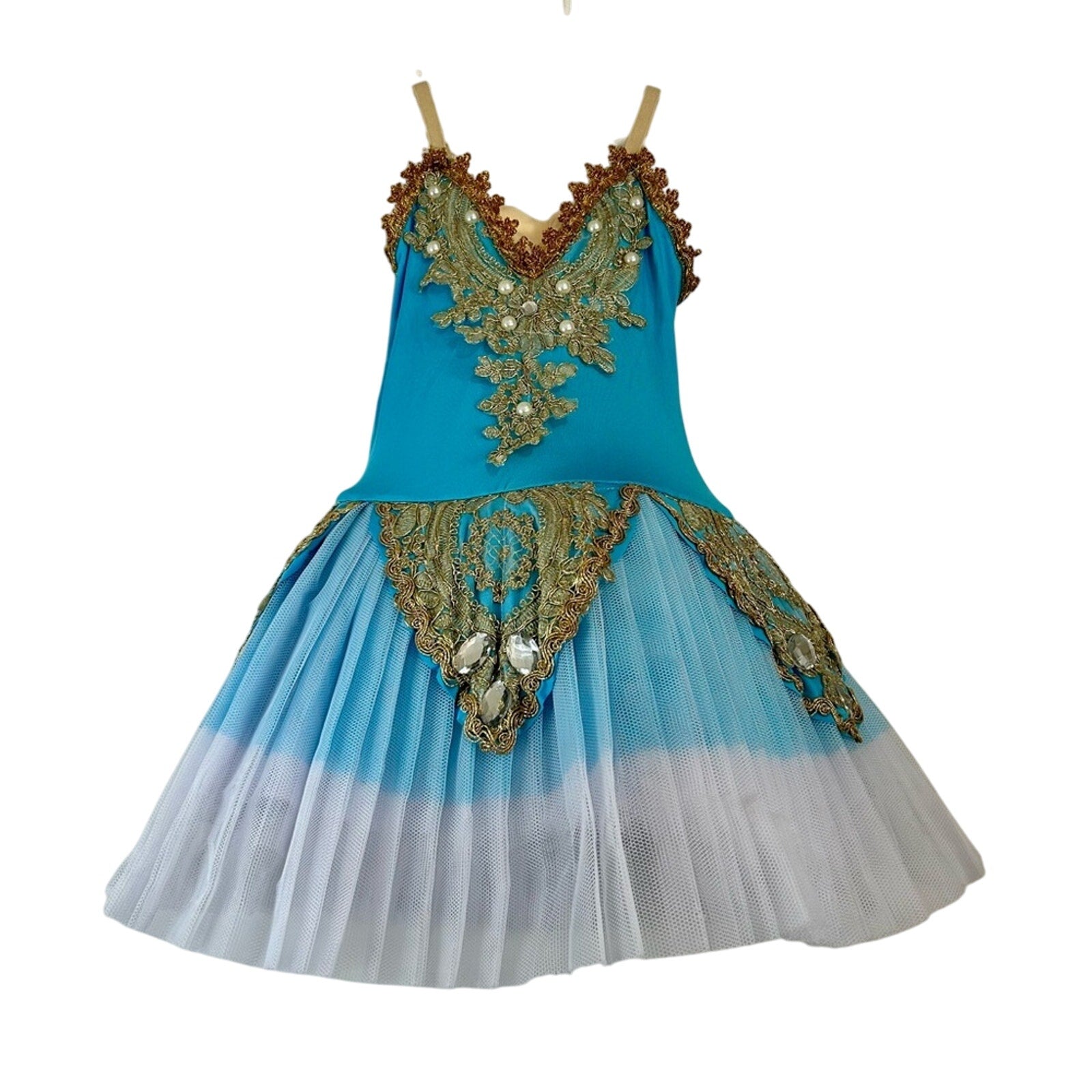 Z&X Girls Camisole Skirted Leotard Ballet Dress Blue Gold Size 5 NWT Girly Cute